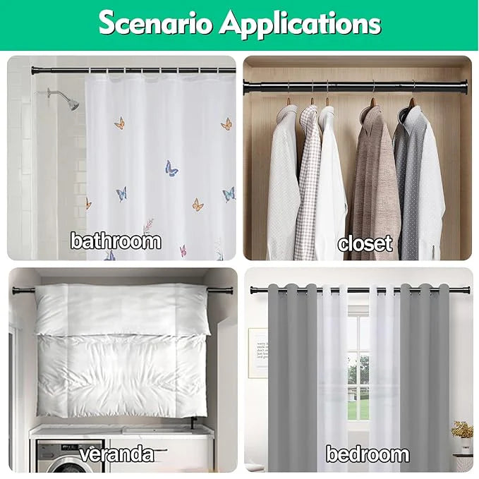 STURDY & DURABLE: Upgrade your bathroom with a stainless steel Spring Tension Shower Curtain Rod that is strong, durable, and built to last. Create a stable and long-lasting shower environment for yourself with this anti-corrosion and anti-scratch shower rod.